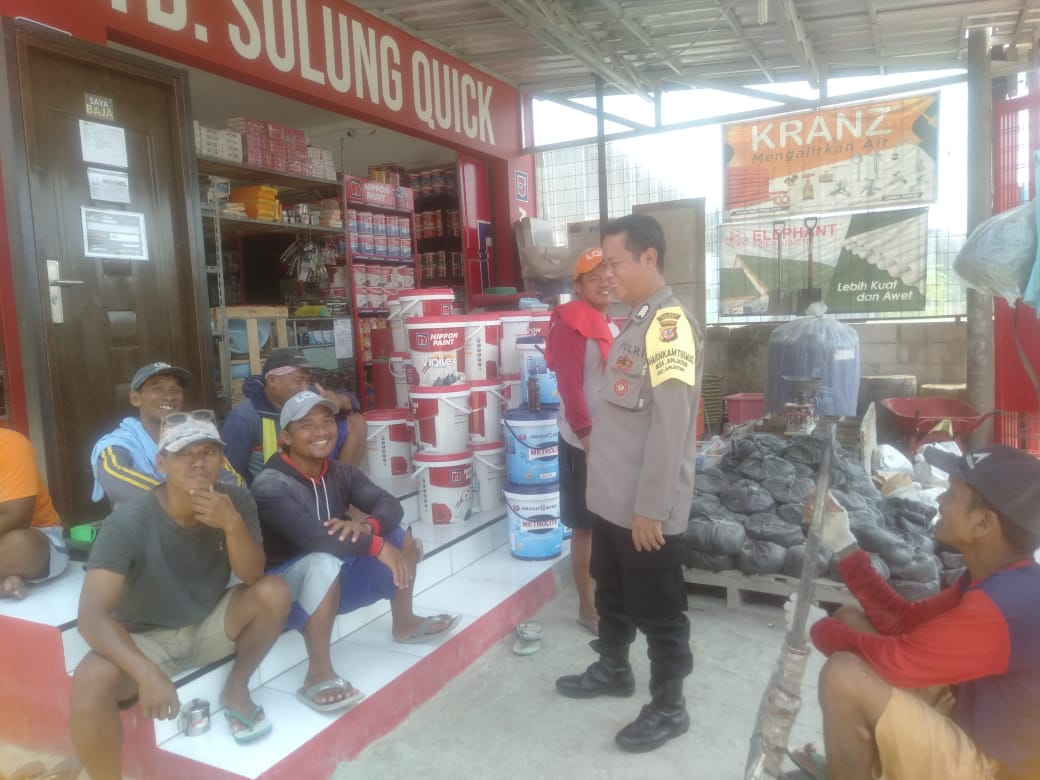 Dalam suasana yang akrab, Bhabinkamtibmas berbincang dengan warga setempat, membahas berbagai isu keamanan serta memberikan pesan-pesan Kamtibmas agar lingkungan tetap aman dan nyaman.