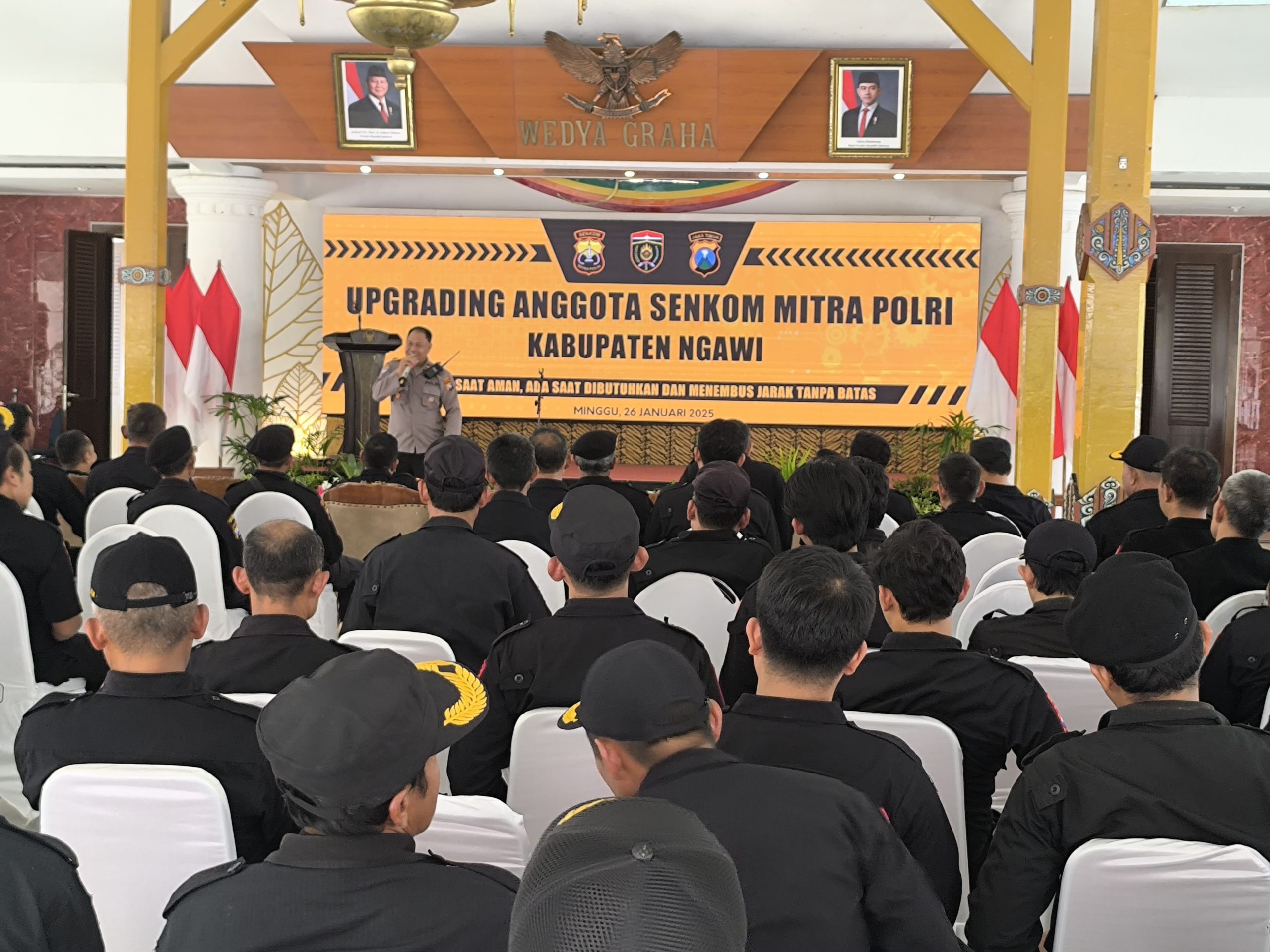 Ngawi, 26 Januari 2025 – Bertempat di Pendopo Wedya Graha Kabupaten Ngawi, acara “Upgrading Anggota Senkom Mitra Polri Kabupaten Ngawi” sukses digelar hari ini. Acara tersebut bertujuan untuk meningkatkan kapasitas dan kemampuan para anggota Senkom dalam mendukung tugas kepolisian.