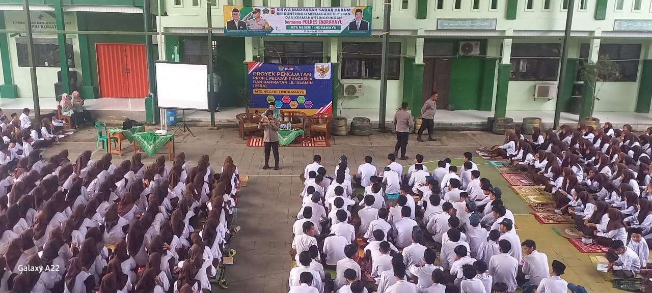 Indramayu – Satuan Binmas Polres Indramayu Polda Jabar menggelar Seminar pendidikan pencegahan kenakalan remaja dan sadar Hukum serta program penguatan profil Pancasila di MTs Negeri 1 Indramayu, Kecamatan Karangampel, Kabupaten Indramayu, Jumat (31/1/2025).
