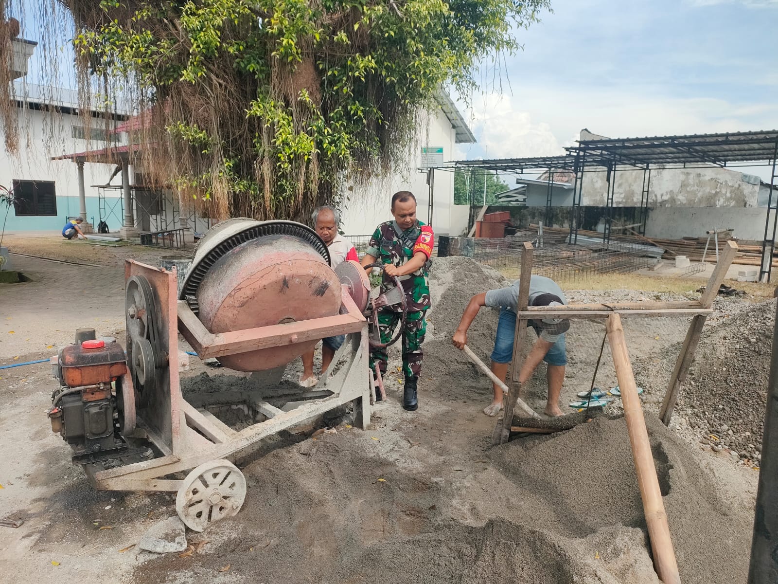 MADIUN, BUSERJATIM.COM GROUP – Babinsa Desa Dagangan, Koramil 0803/14 Dagangan, Peltu Munif Dwi Erwanto, melaksanakan kegiatan Karya Bakti (Karbak) berupa pembuatan gapura di jalan masuk Balai Desa Dagangan, Kecamatan Dagangan, Kabupaten Madiun, Senin (3/2). Kegiatan ini bertujuan untuk memperindah tampilan desa serta memberikan identitas yang lebih jelas bagi masyarakat dan pengunjung.