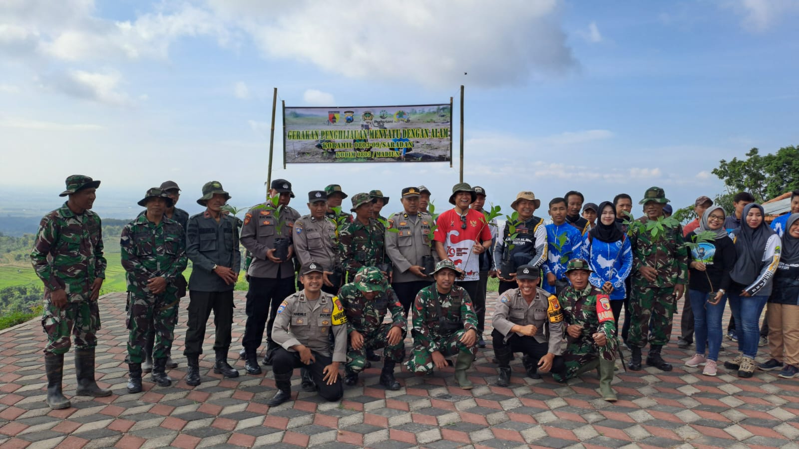 MADIUN, BUSERJATIM.COM GROUP – Koramil 0803-09/Saradan bersama Muspika Kecamatan Saradan berhasil melaksanakan kegiatan penanaman pohon keras dalam rangka Gerakan Penghijauan “Menyatu dengan Alam”. Kegiatan yang dipimpin langsung oleh Danramil Kapten Inf Lulus ini berlangsung di area wisata Watu Bayang, Desa Klangon, Kecamatan Saradan, Kabupaten Madiun, pada Senin (17/2). Kegiatan ini merupakan wujud nyata kepedulian Koramil terhadap lingkungan dan upaya pelestarian alam.