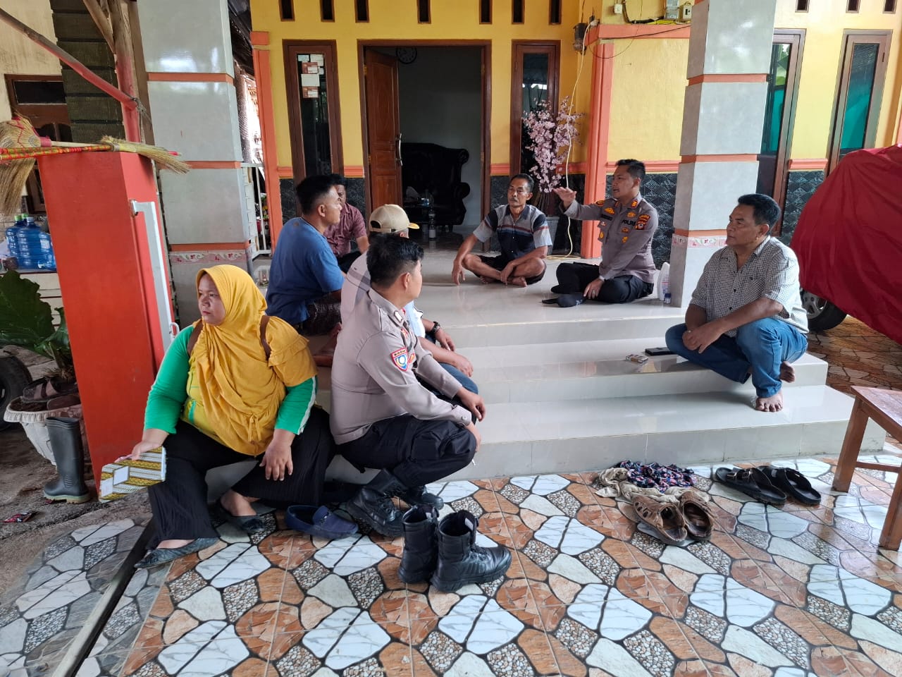 Kapolsek Sliyeg, AKP Sutrisno, S.H., M.H., bersama Bhabinkamtibmas Bripka Mindarto, didampingi Kepala Desa serta Pamong Desa Sudikampiran, menggelar mediasi penyelesaian masalah antara warga di Desa Sudikampiran, Kecamatan Sliyeg, Kabupaten Indramayu, Kamis (20/2/2025).