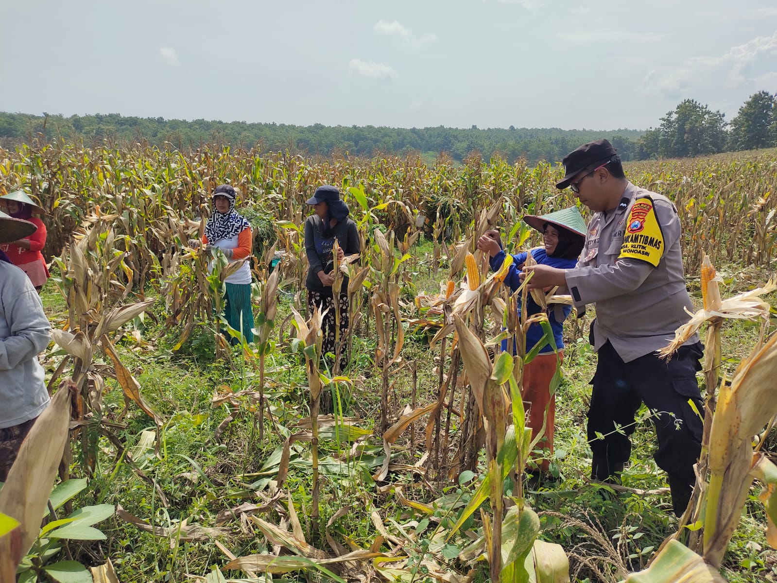 Madiun – Dalam upaya mendukung ketahanan pangan, Bhabinkamtibmas Desa Klitik, Aipda Dedy KS, bersama anggota Polsek Wonoasri, Koramil Wonoasri, serta warga desa, melaksanakan panen raya jagung di lahan Perhutani Petak 122, Desa Ngadirejo, Kecamatan Wonoasri, Kabupaten Madiun, pada Jumat (21/2/2025) pukul 10.00 WIB.