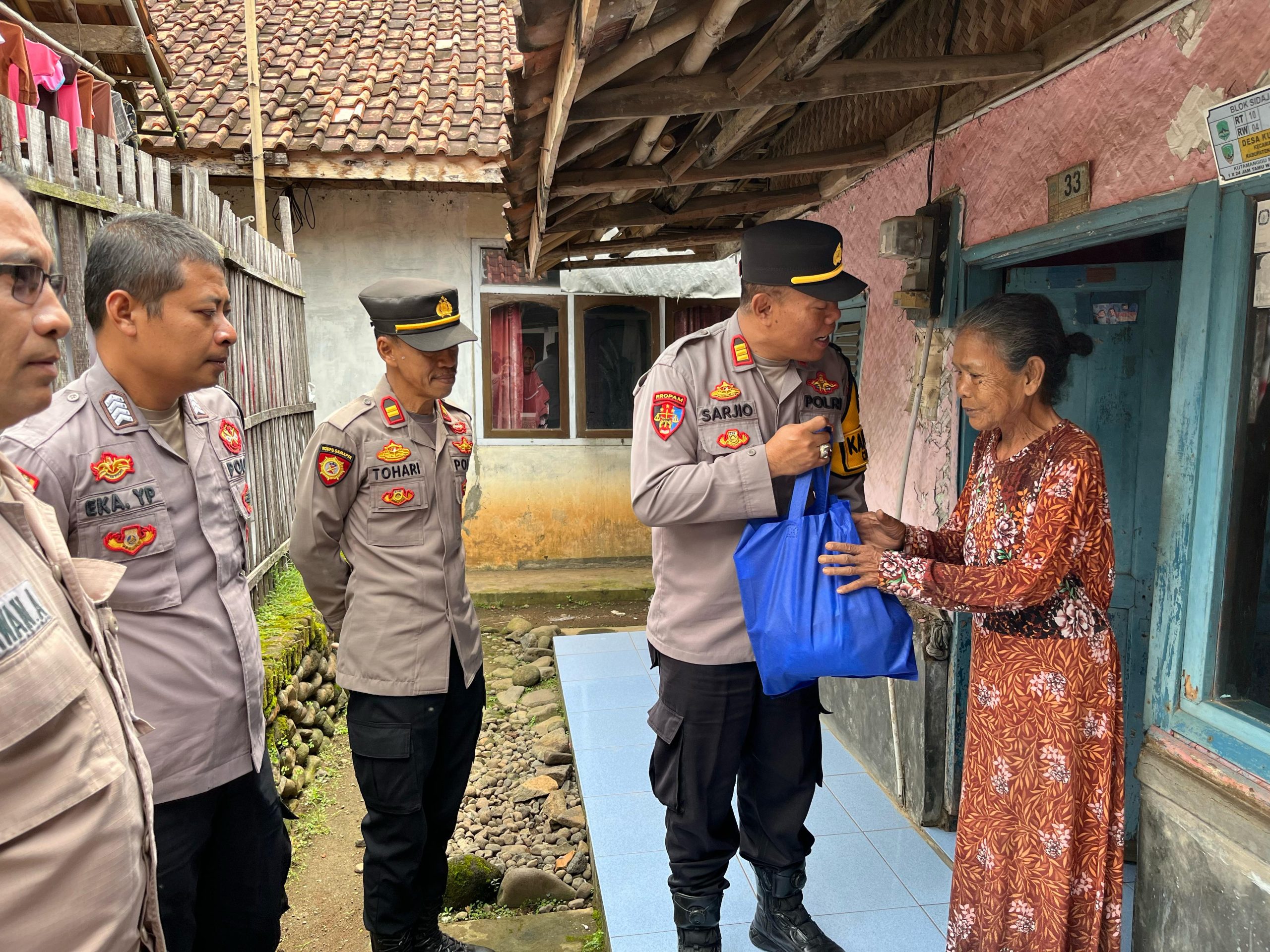 Kapolres Majalengka AKBP Indra Novianto melalui Kapolsek Cigasong AKP Sarjio memberikan bansos secara langsung dengan mendatangi rumah warga yang telah di data sebelumnya oleh Bhabinkamtibmas setempat.