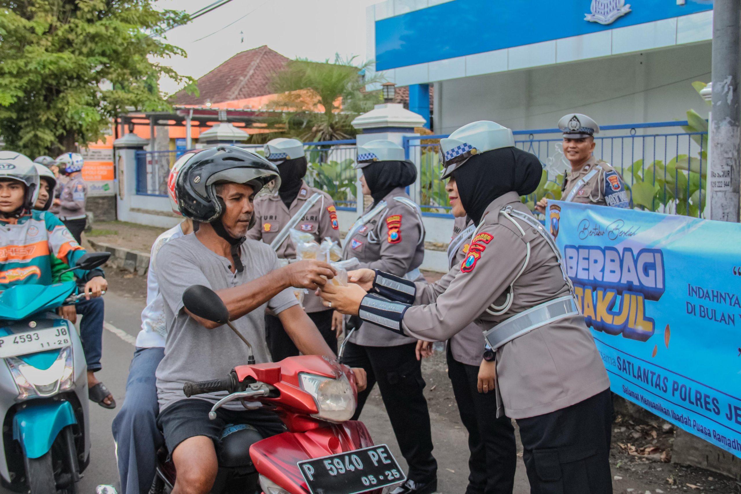 Polres Jember Himbau Masyarakat Tertib Lalu Lintas di Bulan Ramadhan Dengan Berbagi Takjil