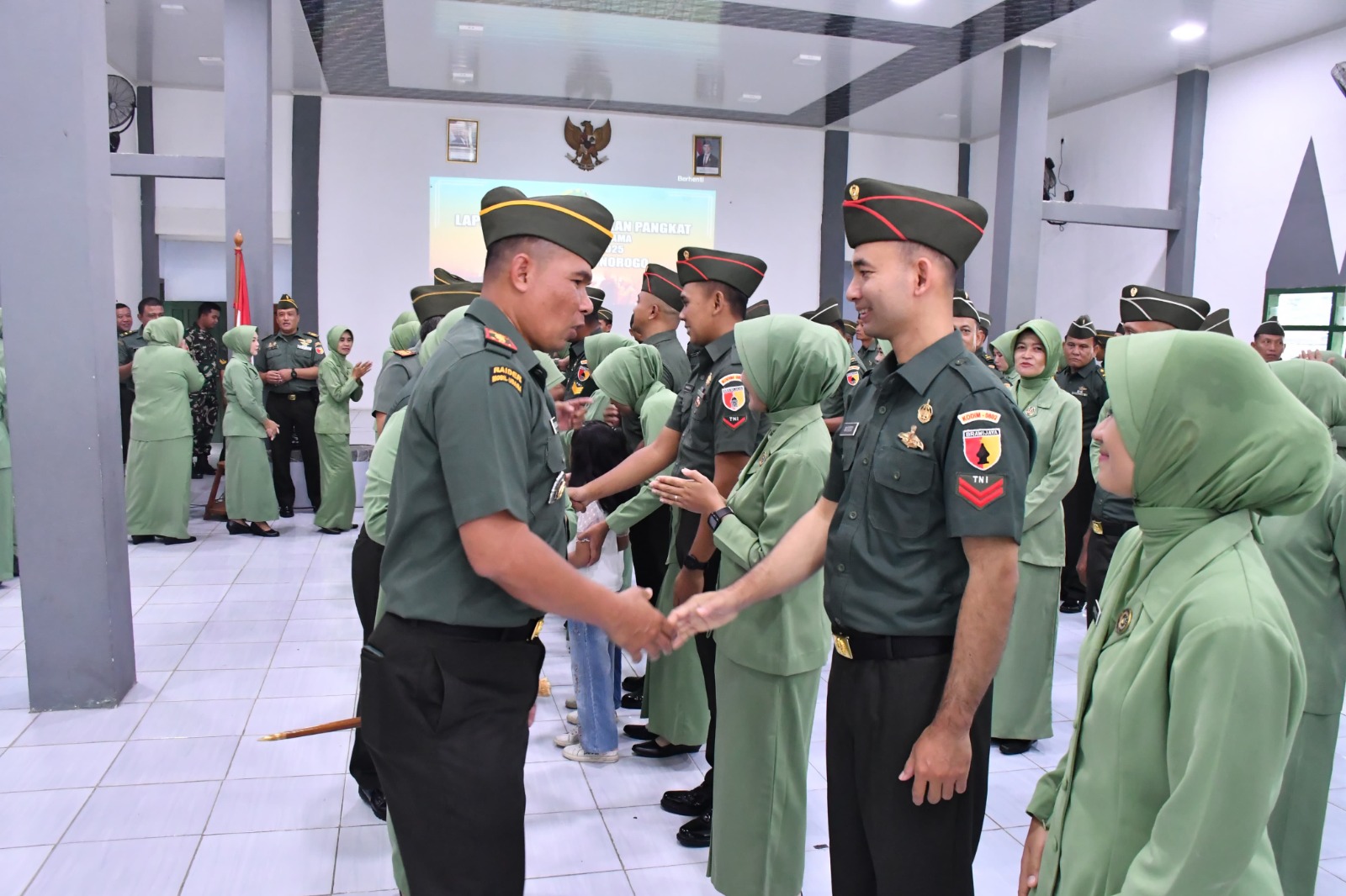 PONOROGO,BUSERJATIM.COM GROUP,- Kodim 0802/Ponorogo hari ini menggelar acara Laporan Korps Kenaikan Pangkat anggota (Bintara dan Tamtama) Periode 1 April 2025 bertempat di Gedung Paraduta Kodim 0802/Ponorogo jalan Basuki Rahmat nomor 38 Kota Kabupaten Ponorogo, Rabu (09/04/2025).
