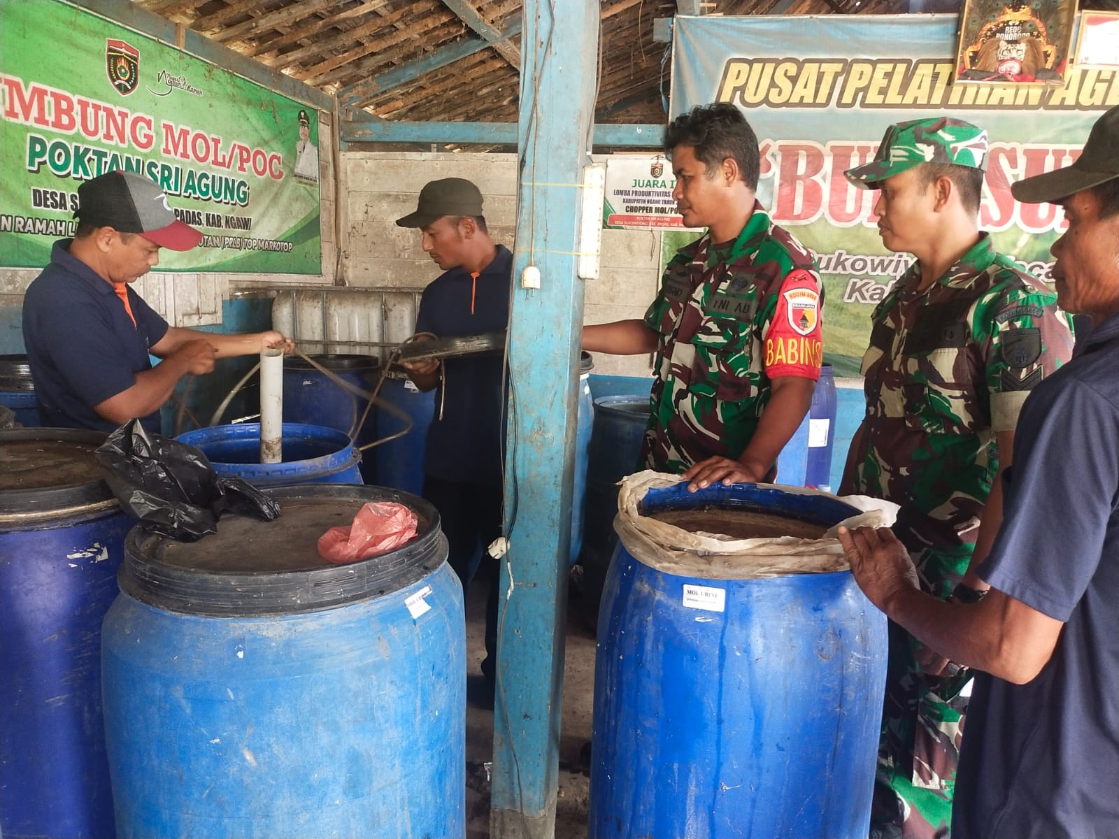 NGAWI, BUSERJATIM.COM GROUP – Dalam upaya mendukung program swasembada pangan nasional, Babinsa jajaran Kodim 0805/Ngawi menunjukkan kepedulian terhadap pertanian ramah lingkungan dengan mengikuti pelatihan pembuatan agen hayati dan pupuk organik MOL (Micro Organisme Lokal) serta POC (Pupuk Organik Cair). Kegiatan ini berlangsung di Desa Sukowiyono, Kecamatan Padas, Kabupaten Ngawi, Rabu (16/04/2025).