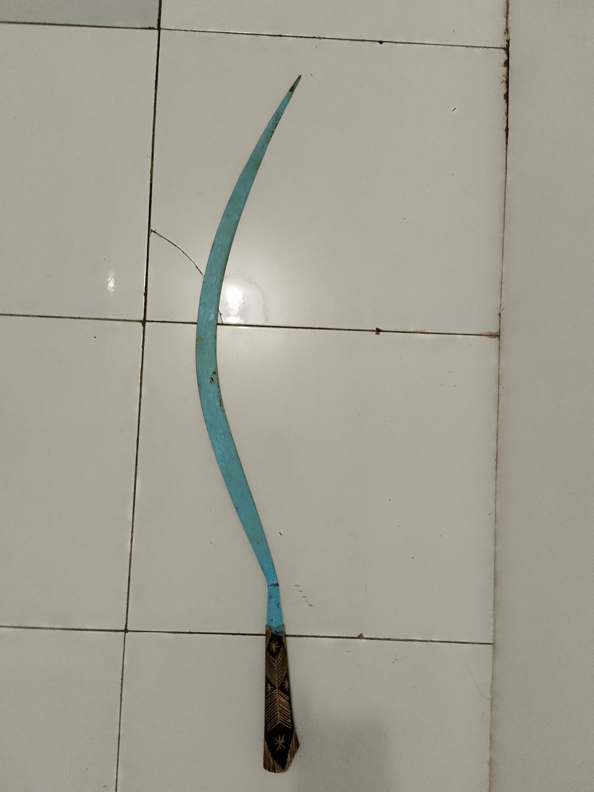 “Setelah didekati dan diperiksa, ternyata benda yang disembunyikan adalah sebilah celurit ukuran 03 dengan gagang kayu yang disarungi kain bercorak batik wayang,” jelas AKP Hillal Adi Imawan.