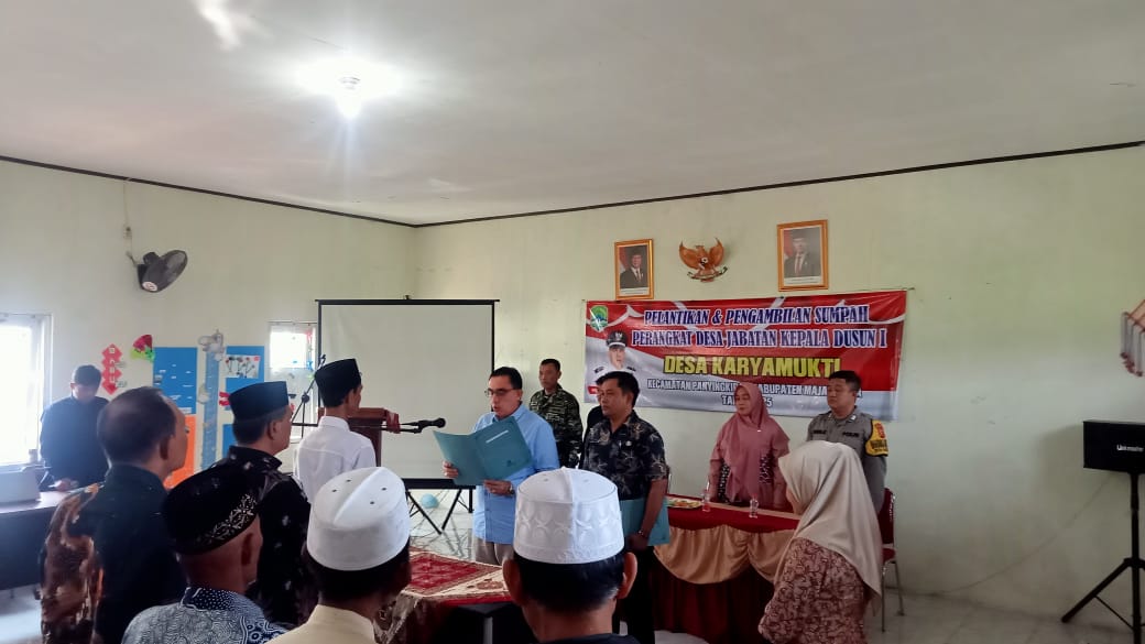 Majalengka – Danposramil 1717/Kadipaten, Peltu Gatot Sopi, menghadiri pelantikan Kepala Dusun 1 Desa Karyamukti, Kecamatan Panyingkiran, Kabupaten Majalengka, yang berlangsung pada Kamis (8/5/2025).
