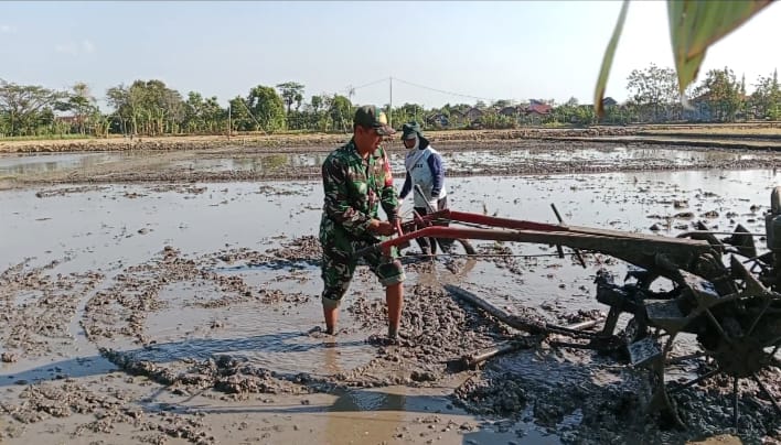 Babinsa Kodim Ponorogo Bantu Petani Olah Lahan Tanaman Padi