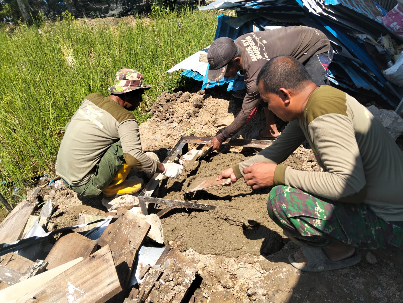 Pada hari Jumat, 30 Mei 2025, terlihat anggota Satgas TMMD ke-124 Kodim 1002/HST fokus pada sasaran rehabilitasi rumah ibadah, yaitu Langgar Darussalam. Mereka terpantau tengah melaksanakan pemasangan pondasi tower yang nantinya akan digunakan untuk pengeras suara.