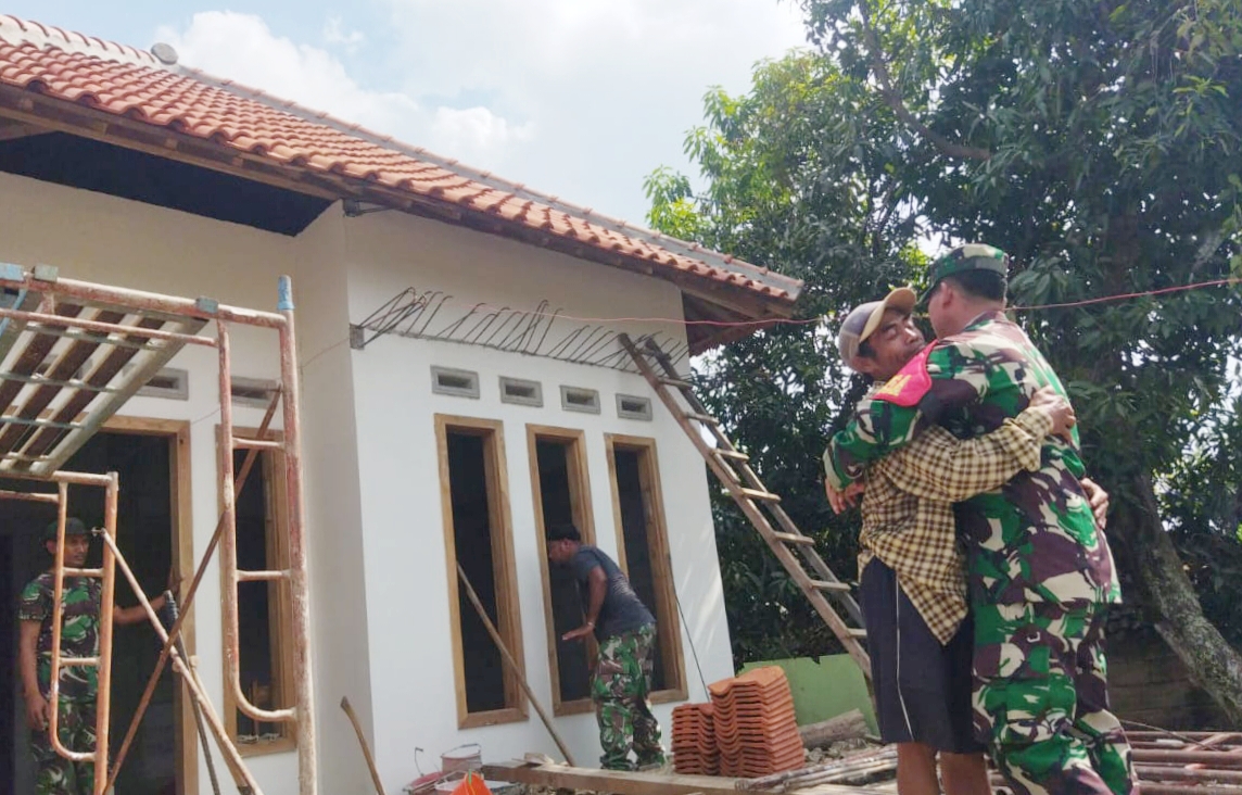 “Alhamdulillah senang, bersyukur sekali, nggak pernah menyangka akhirnya bisa memperbaiki rumah,” katanya sambil memeluk Babinsa Lengkong Lor, Serka Juhardi yang datang ke rumahnya.