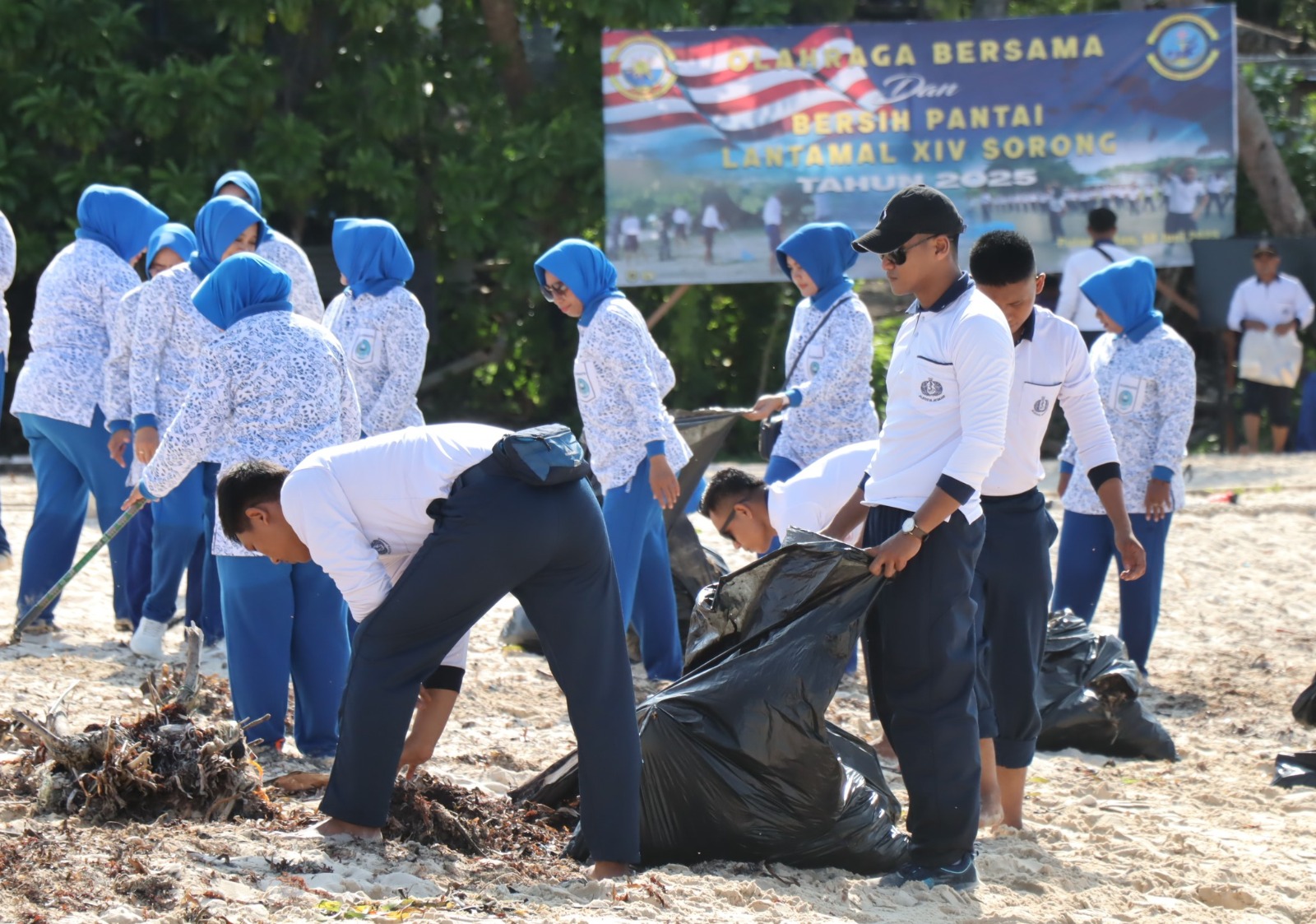 KOTA SORONG PBD, BUSERJATIM.COM GROUP – Dalam rangka mendukung program Zero Waste dan menjaga kelestarian lingkungan maritim, Pangkalan Utama TNI Angkatan Laut (Lantamal) XIV Sorong melaksanakan kegiatan bersih-bersih pantai dan olahraga bersama. Kegiatan ini fokus pada Program Zero Waste di Raja Ampat dan turut melibatkan masyarakat lokal dalam upaya pembersihan pantai. Lokasi kegiatan berada di Pulau Matan, Kabupaten Raja Ampat, Papua Barat Daya. Selasa (10/09/2025).