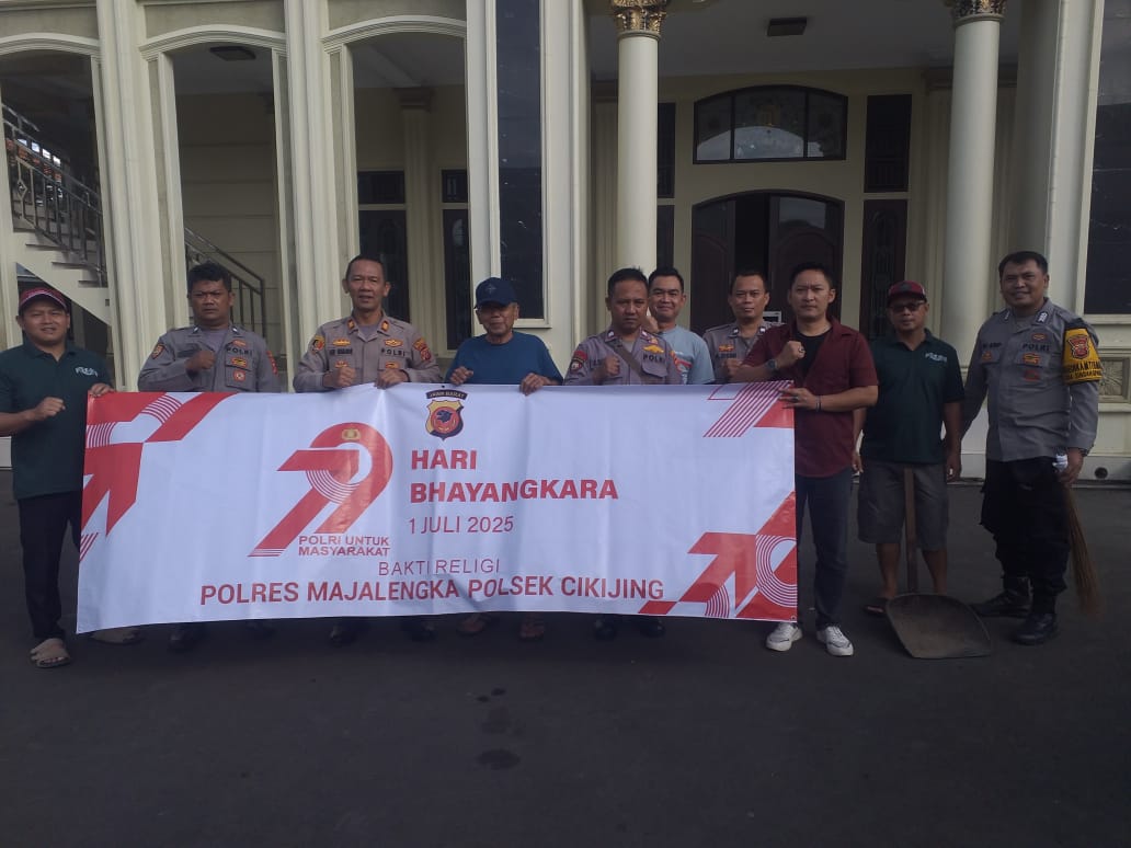 Majalengka – Polsek Cikijing Polres Majalengka Polda Jabar menggelar kegiatan bakti religi dengan membersihkan Masjid Al-Hidayah, Desa Kasturi, Kecamatan Cikijing, Sabtu (14/06/2025).