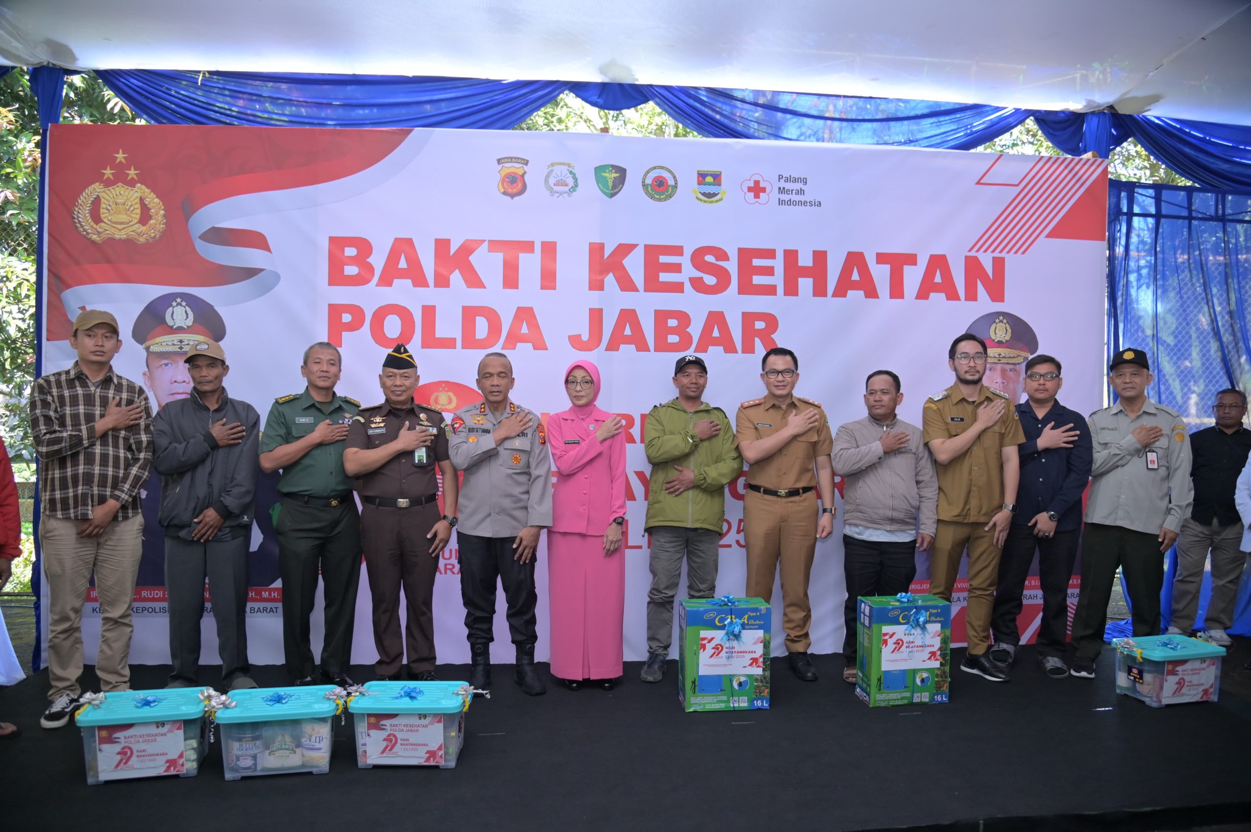 Kapolda Jabar mengatakan bahwa Selain pelayanan kesehatan, kegiatan ini juga diisi dengan pemberian bantuan sosial berupa paket sembako, alat bantu kesehatan berupa Ankle Foot Orthosis (AFO) kepada penyandang disabilitas, serta bantuan alat pertanian seperti sprayer kepada kelompok petani hortikultura.