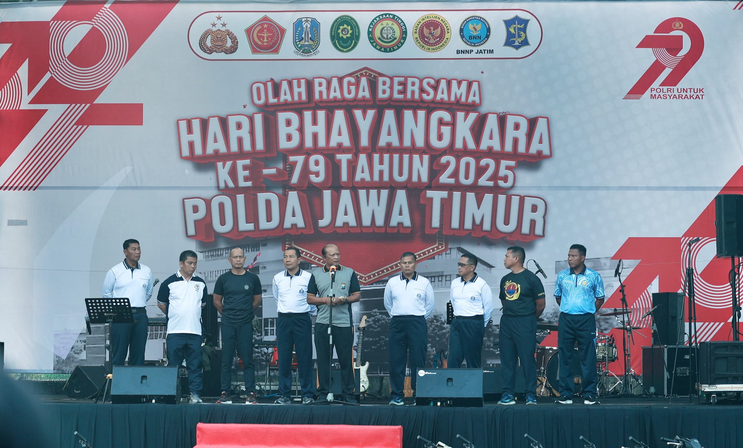 Kapolda Jatim Irjen Pol Drs. Nanang Avianto, M.Si menyampaikan kegiatan olahraga bersama dalam rangka menyambut Hari Bhayangkara ke – 79 merupakan momentum yang sangat baik.