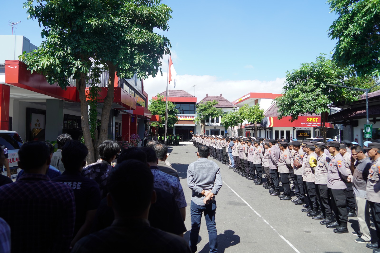 PONOROGO,BUSERJATIM.COM GROUP- Polres Ponorogo Polda Jatim menerjunkan 430 personel gabungan untuk mengamankan rangkaian acara Kirab Pusaka, Pawai Lintas Sejarah, dan Jamasan Pusaka Sejarah dalam rangka Grebeg Suro 2025, Kamis (26/6/2025).
