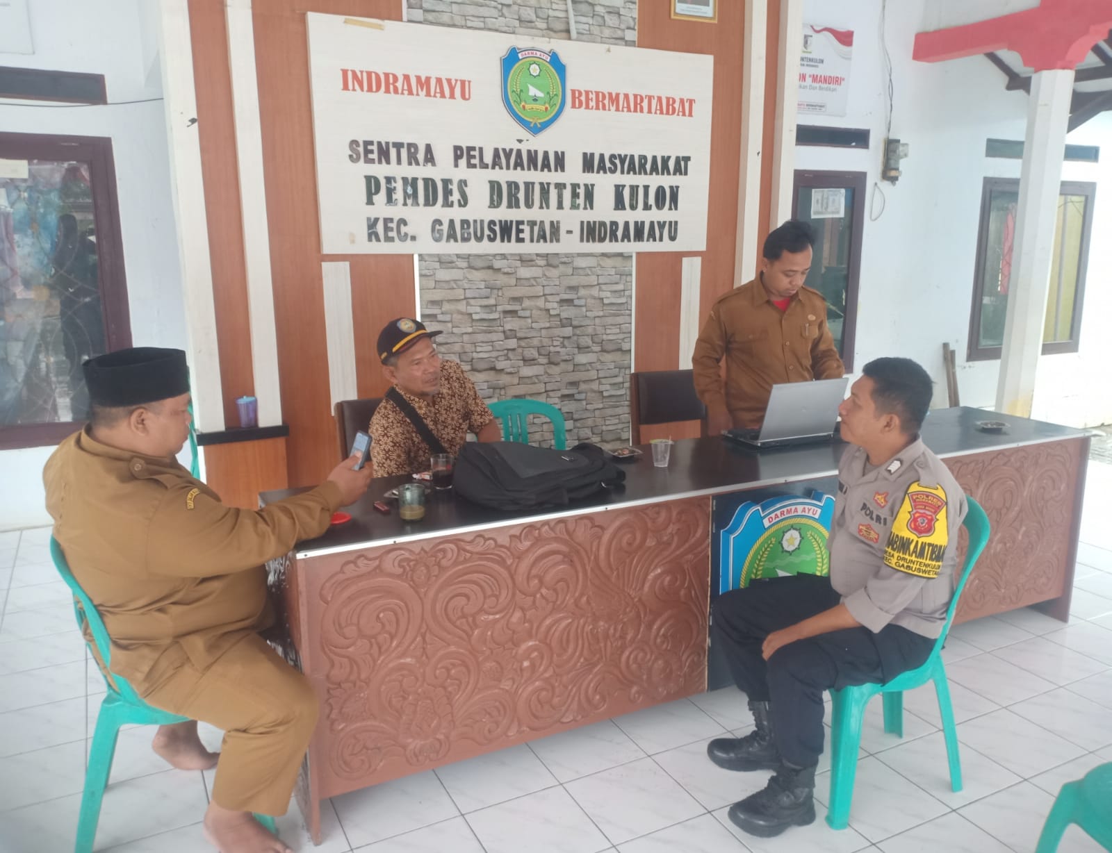 Indramayu – Bhabinkamtibmas Polsek Gabuswetan, Polres Indramayu Polda Jabar BRIPKA Zaenal Abidin melaksanakan kegiatan sambang pamong desa di Desa Druntenkulon, Kecamatan Gabuswetan, Kabupaten Indramayu. Selasa (8/7/2025).