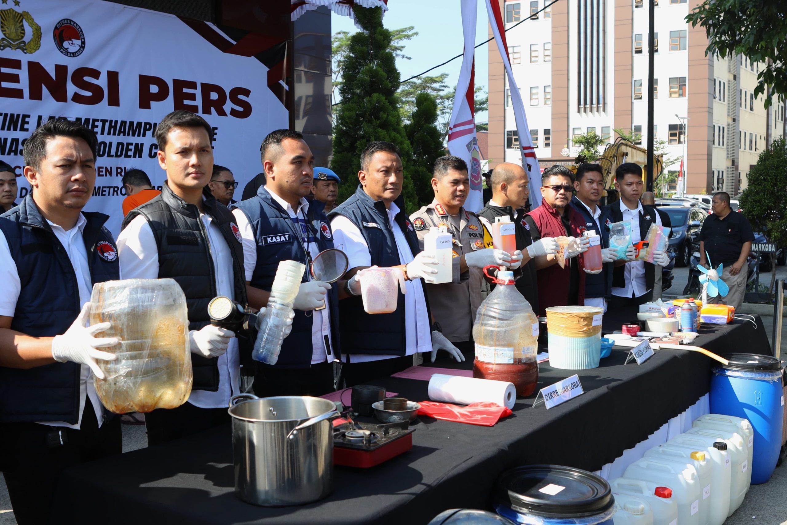 “Modus operandinya adalah memproduksi narkotika jenis sabu berbasis methamphetamine. Laboratorium clandestine ini terafiliasi dengan jaringan narkotika internasional Golden Crescent, yang mencakup Iran, Afghanistan, dan Pakistan,” ujar Kombes Pol. Hendra Rochmawan.