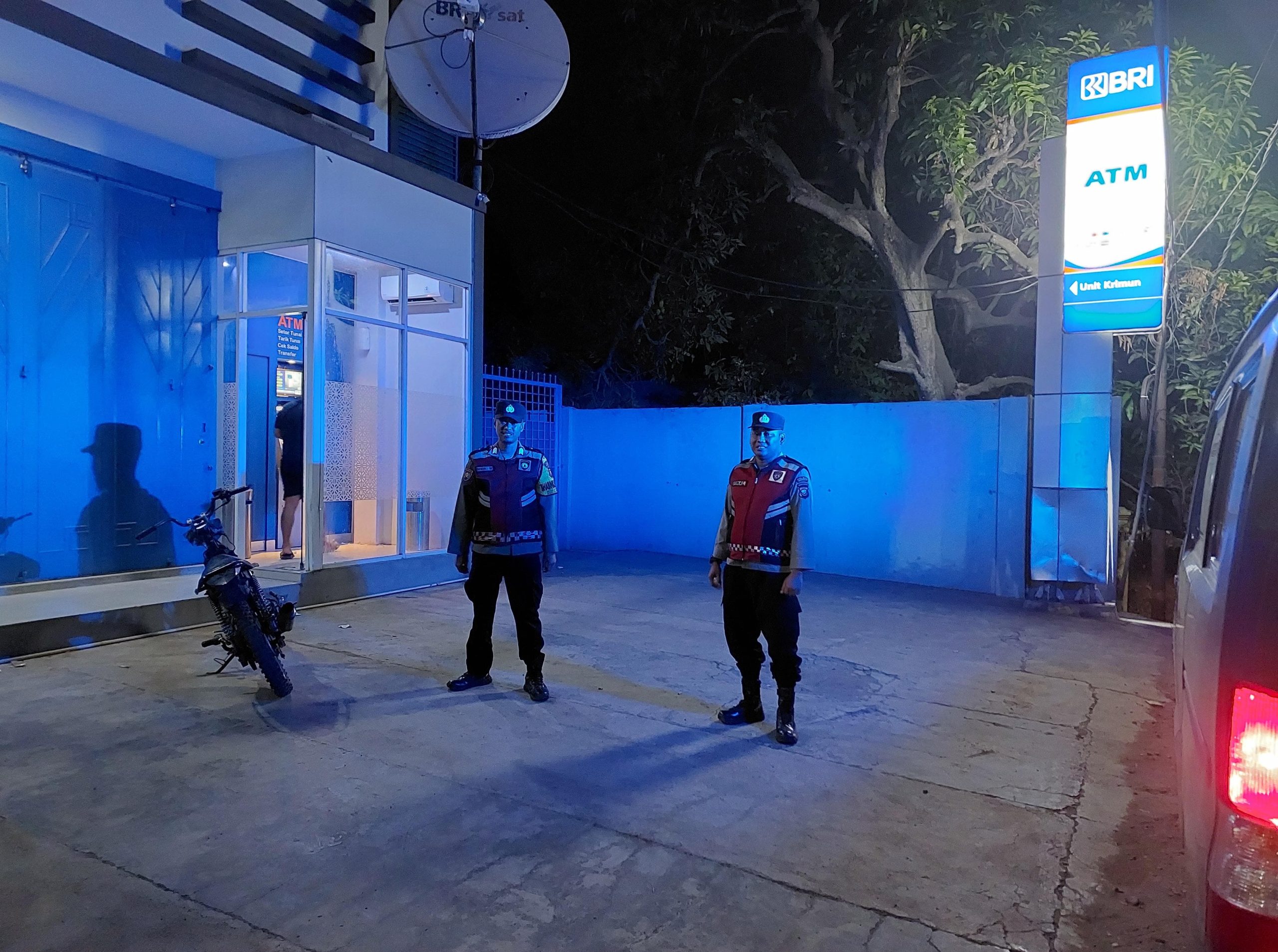 Dalam kegiatan pada malam hari tersebut, dua personel Polsek Losarang terlihat berjaga di halaman ATM dengan sikap siaga, sembari memantau situasi sekitar dan memberikan rasa aman bagi warga.
