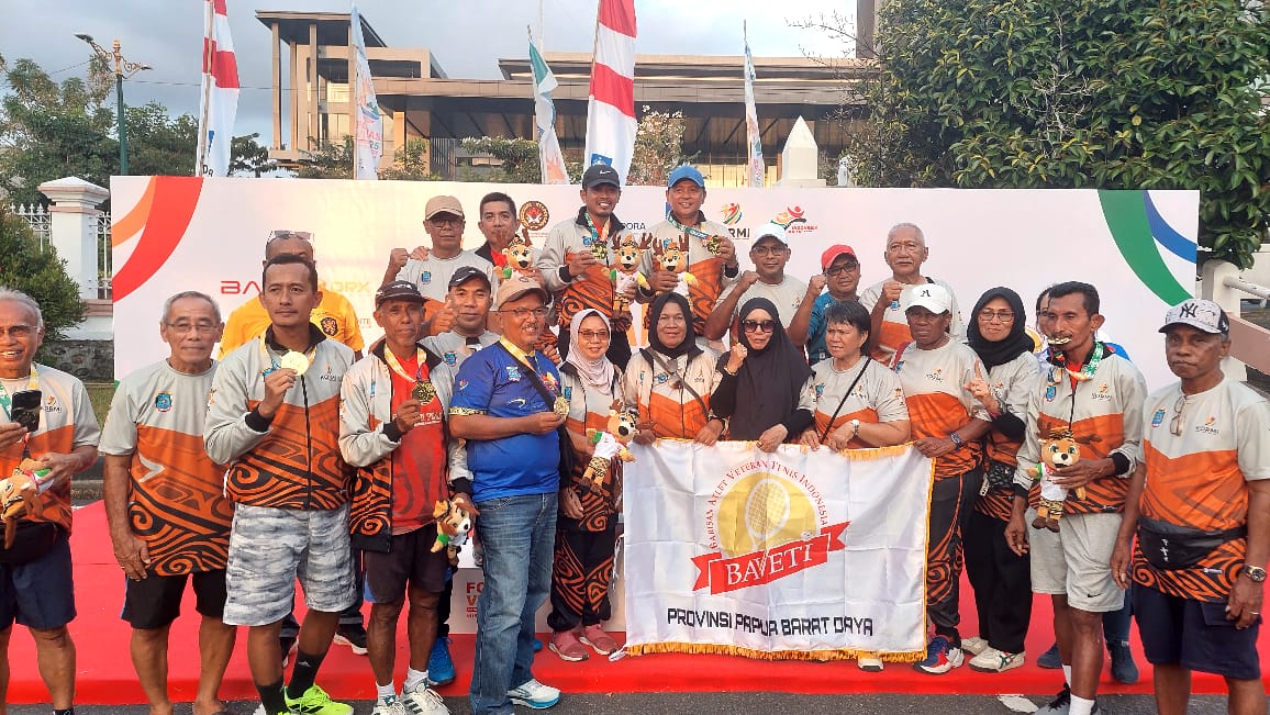 NTB, BUSERJATIM.COM GROUP (28 Juli 2025) — Prestasi membanggakan datang dari kontingen Papua Barat Daya (PBD) dalam ajang Festival Olahraga Rekreasi Nasional (FORNAS) VIII yang tengah berlangsung di Nusa Tenggara Barat. Tim Tenis Lapangan dari Barisan Atlet Veteran Tenis Indonesia (BAVETI) PBD berhasil mencetak sejarah dengan meraih medali emas setelah menaklukkan tim Kalimantan Timur (KALTIM) dalam laga final yang sengit dengan skor akhir 2-1, pada Senin, 28 Juli 2025.