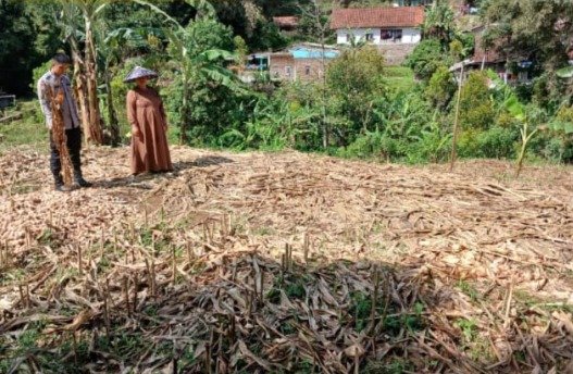 Dukung Program Ketahanan Pangan Nasional, Polsek Argapura Monitoring Panen Jagung di Desa Haurseah