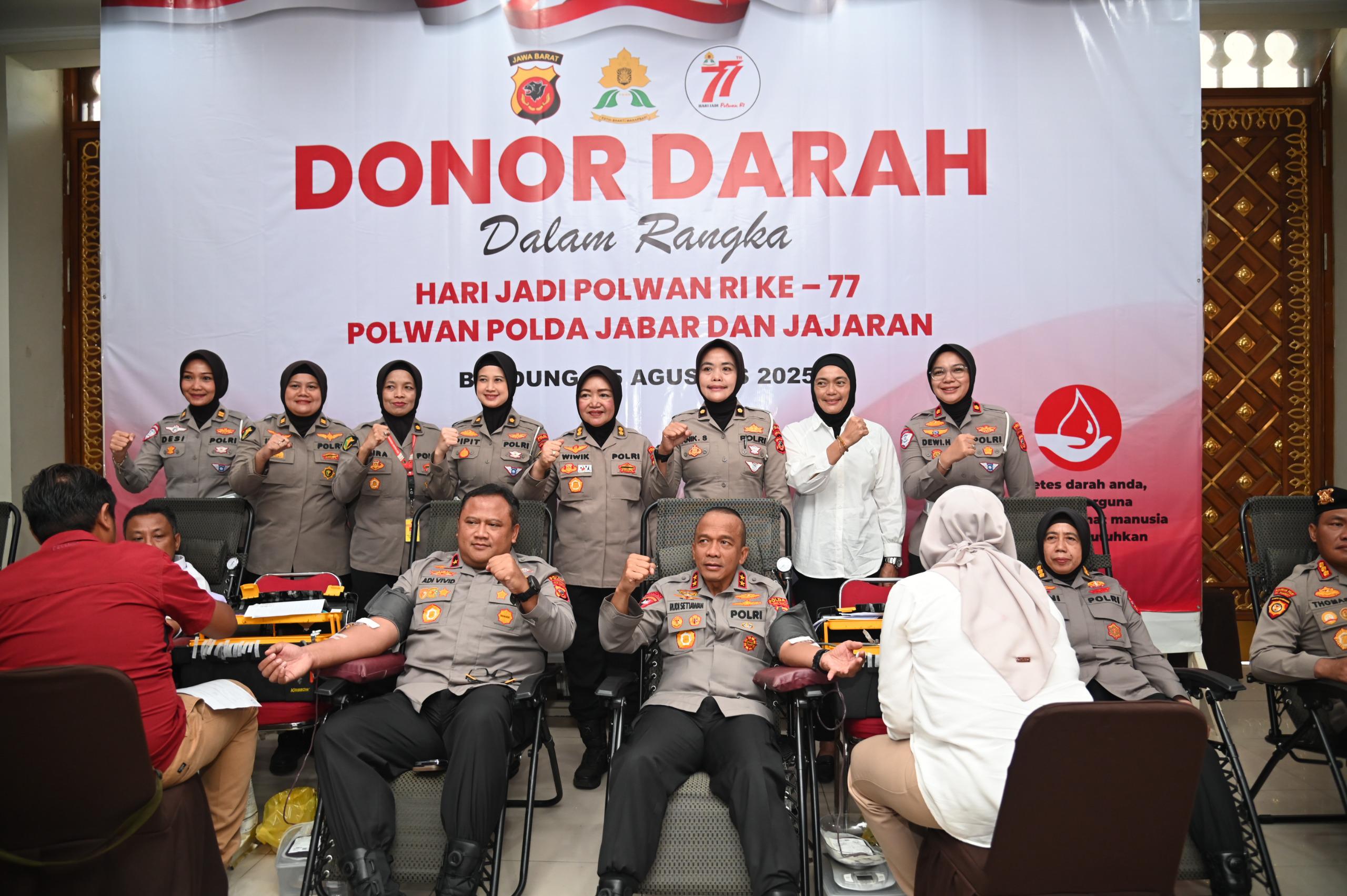 Senyum dan semangat kebersamaan tampak mewarnai aksi donor darah yang digelar Polwan Polda Jabar dalam rangka memperingati Hari Jadi Polisi Wanita (Polwan) ke-77, Senin (25 /8/ 2025).