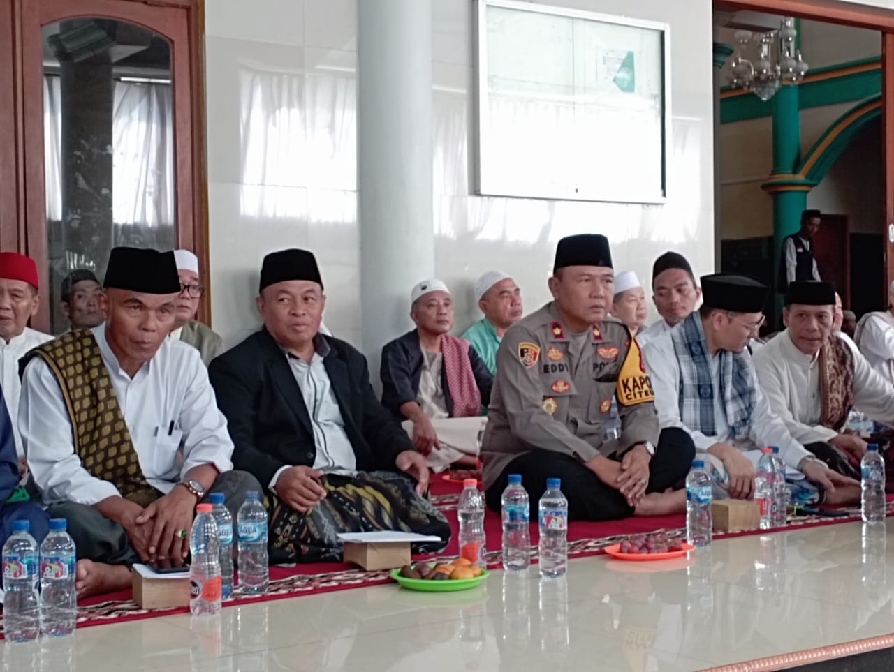 Dalam kesempatan tersebut, Kapolsek Citeureup Kompol Eddy Santosa memberikan sambutan sekaligus menyampaikan imbauan kamtibmas. Ia mengajak para tokoh agama, tokoh masyarakat, pemuda, dan para santri untuk senantiasa menjaga keamanan serta ketertiban di lingkungan masing-masing.