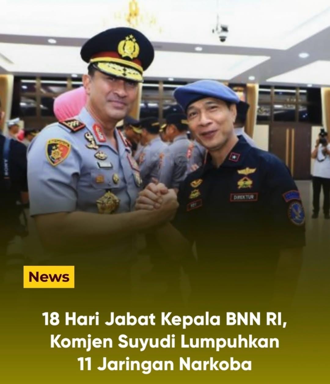 Selama 18 hari memimpin BNN,Komjen Suyudi berhasil melumpuhkan 11 jaringan narkotika yang beroperasi di berbagai daerah Indonesia.