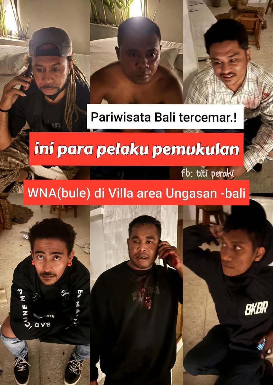 DENPASAR | ELANGBALI.COM – Inilah wajah-wajah para pelaku biadab yang tega melakukan pemukulan brutal terhadap seorang warga negara asing di sebuah villa kawasan Ungasan, Bali.