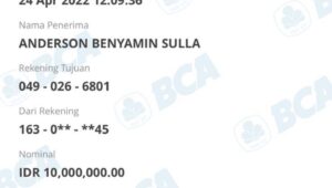 Rp 5.000.000 pada 28 April 2022,Rp 10.000.000 pada 24 April 2022,Rp 5.000.000 pada 25 April 2022.