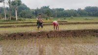 Dukung Pertanian di Wilayah, Babinsa Pangkur Terjun Ke Sawah Bantu Pemupukan Padi